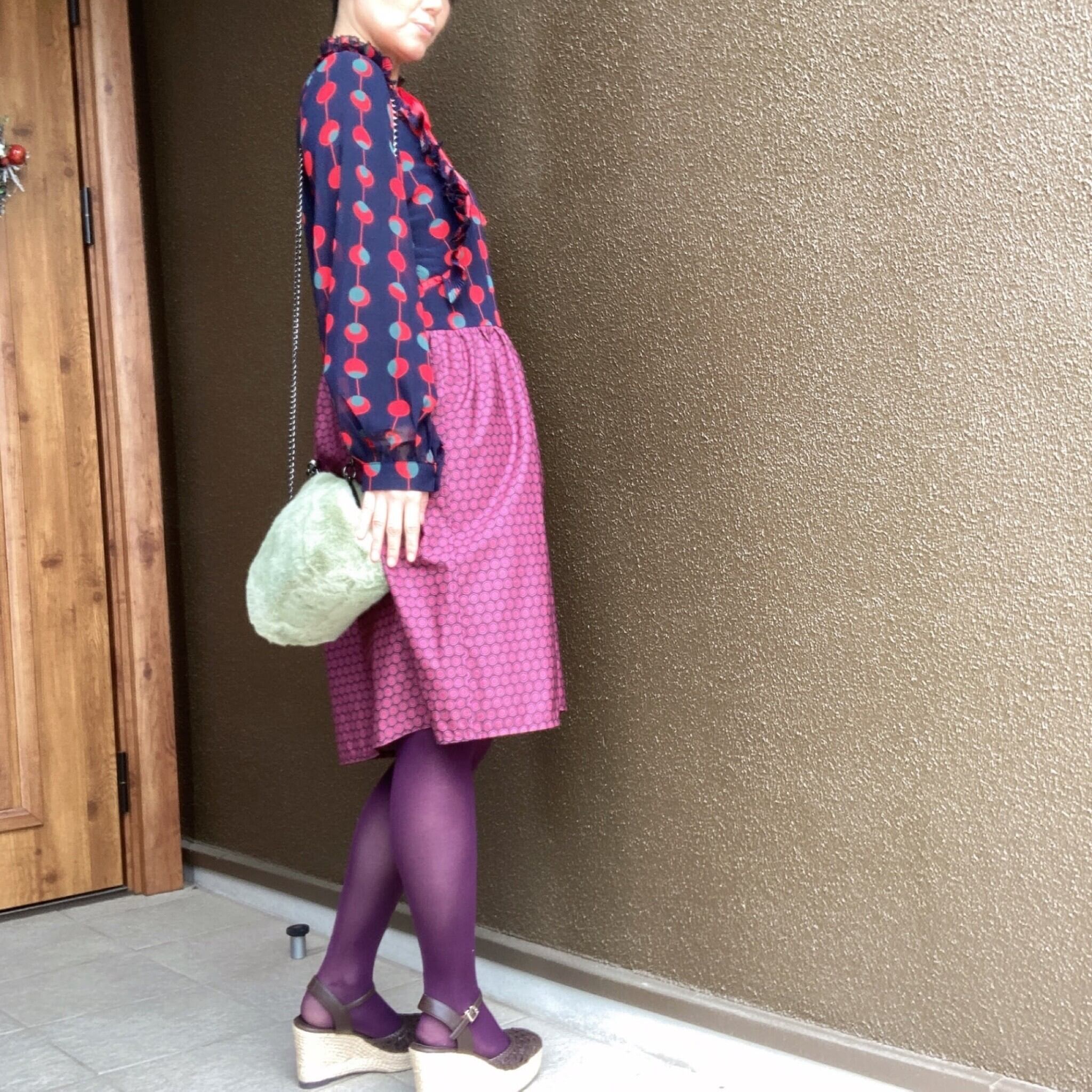 さらさら生地で着心地の良い、ひざ丈の大人かわいいブラウスワンピース