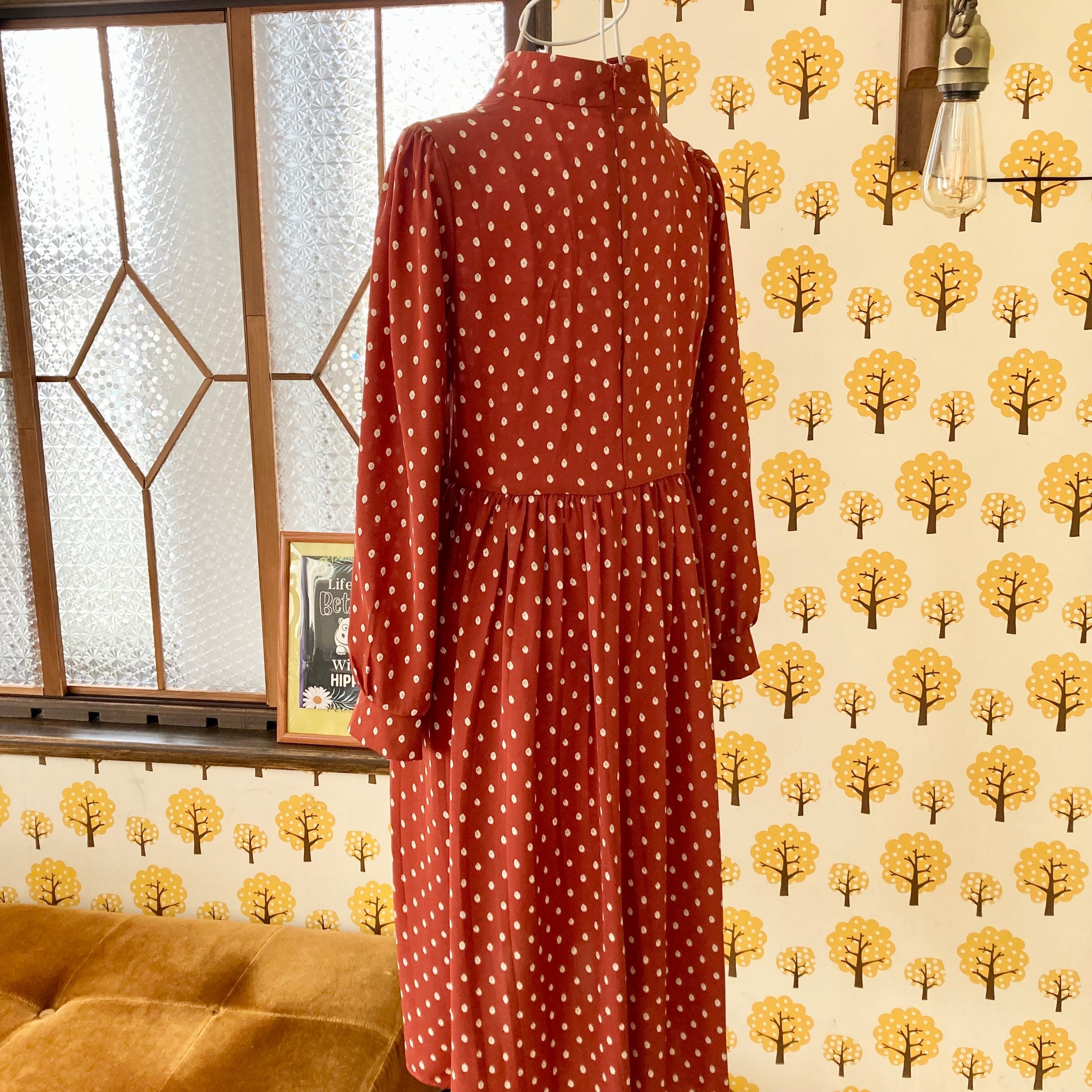 オレンジブラウンのひざ丈のミドルワンピース