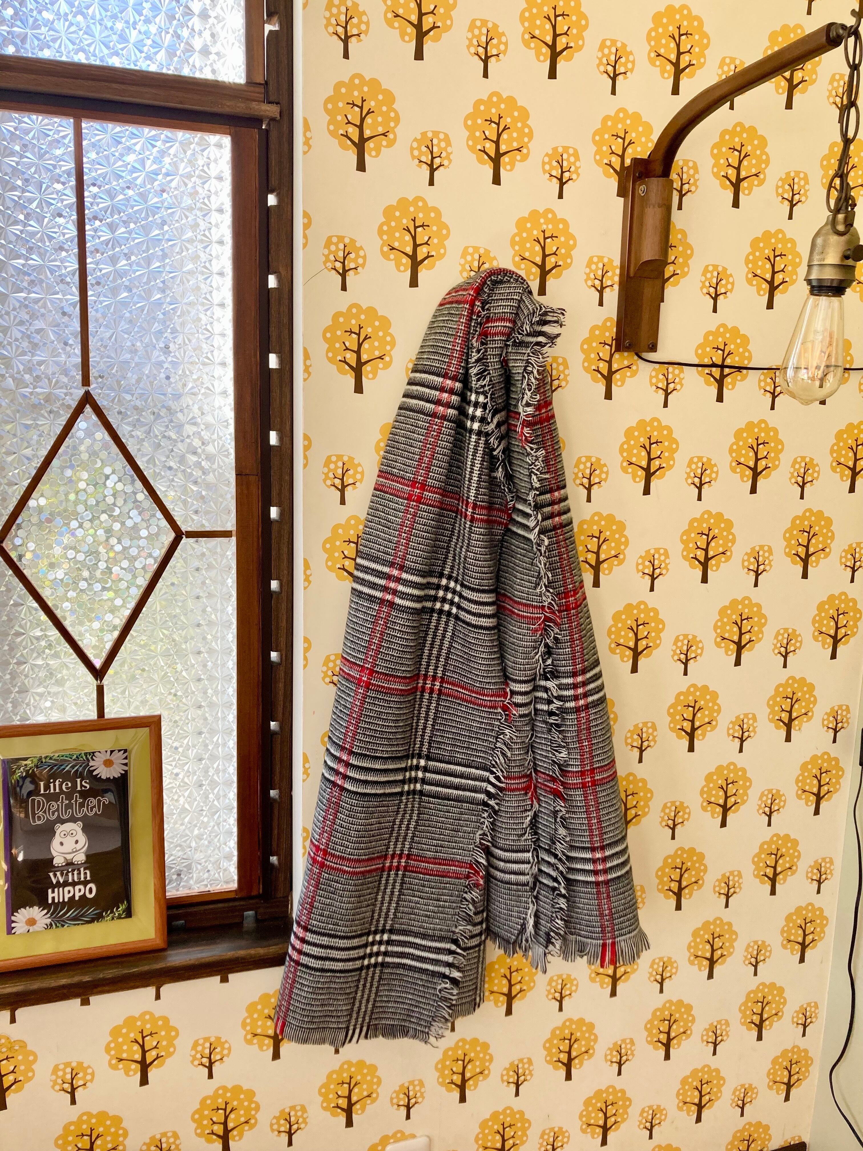 大きめなのでマフラーにしたり肩からかけてショールにしたり、ひざ掛けにもちょうどいいサイズ