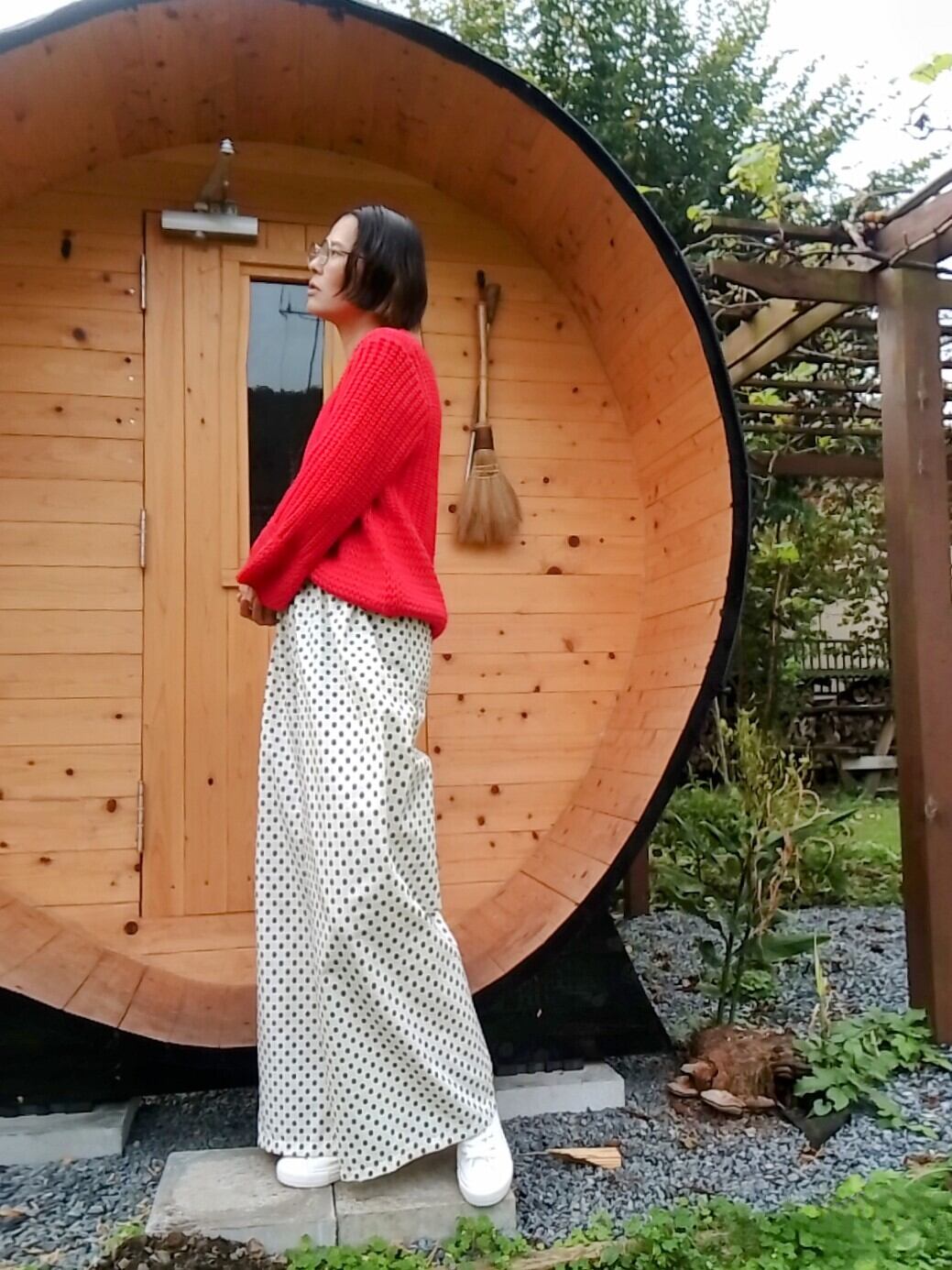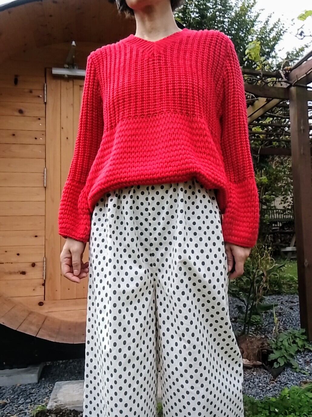 編み目がウエスト部分から切り替わっていてお腹周りも気にせずにゆったり着ていただけます。