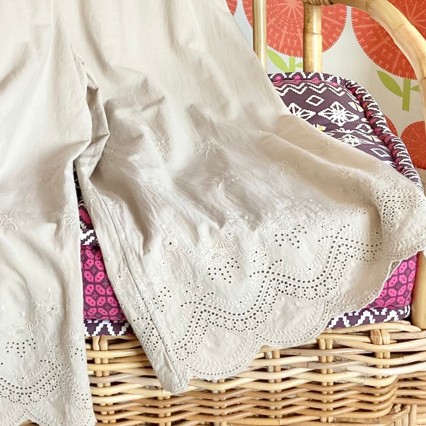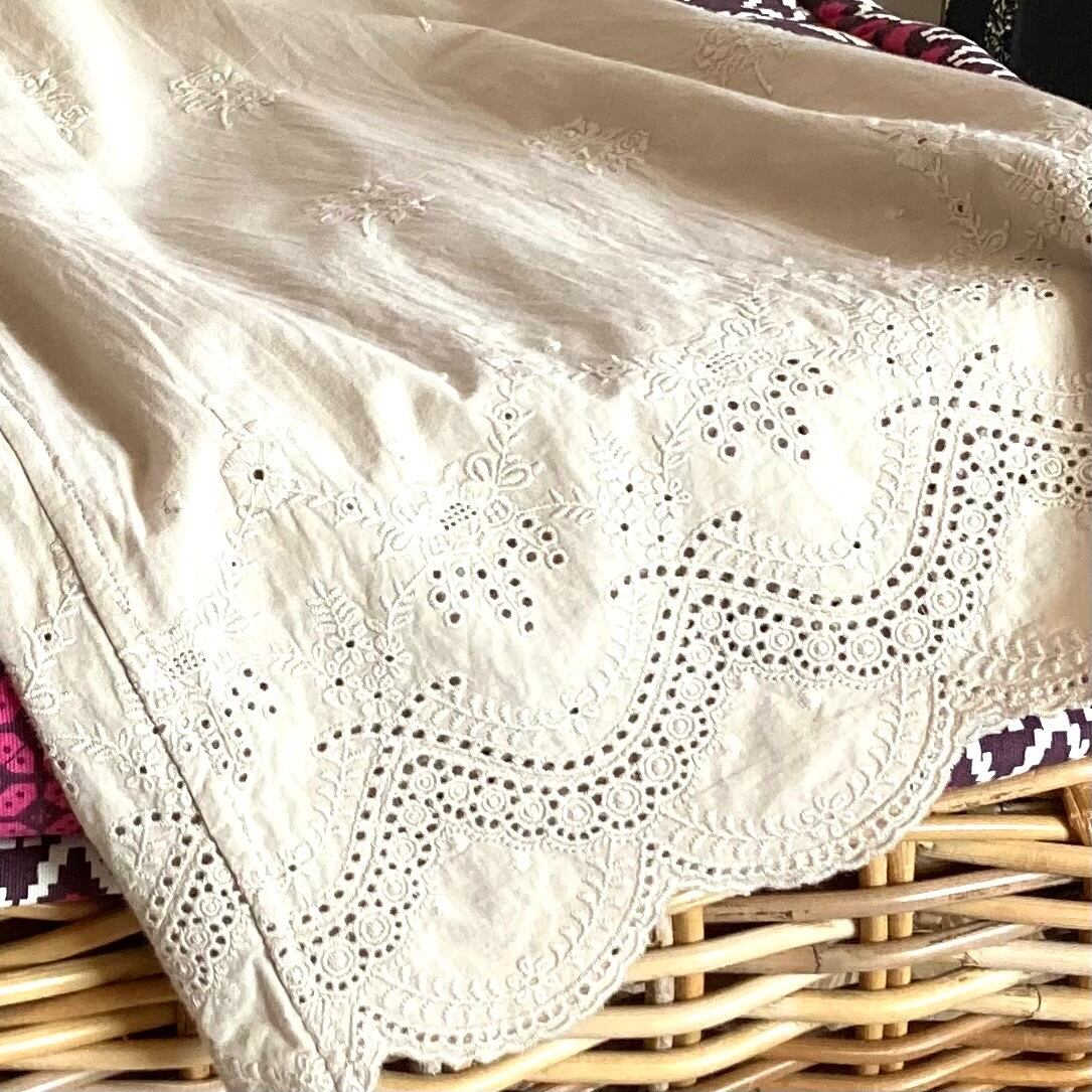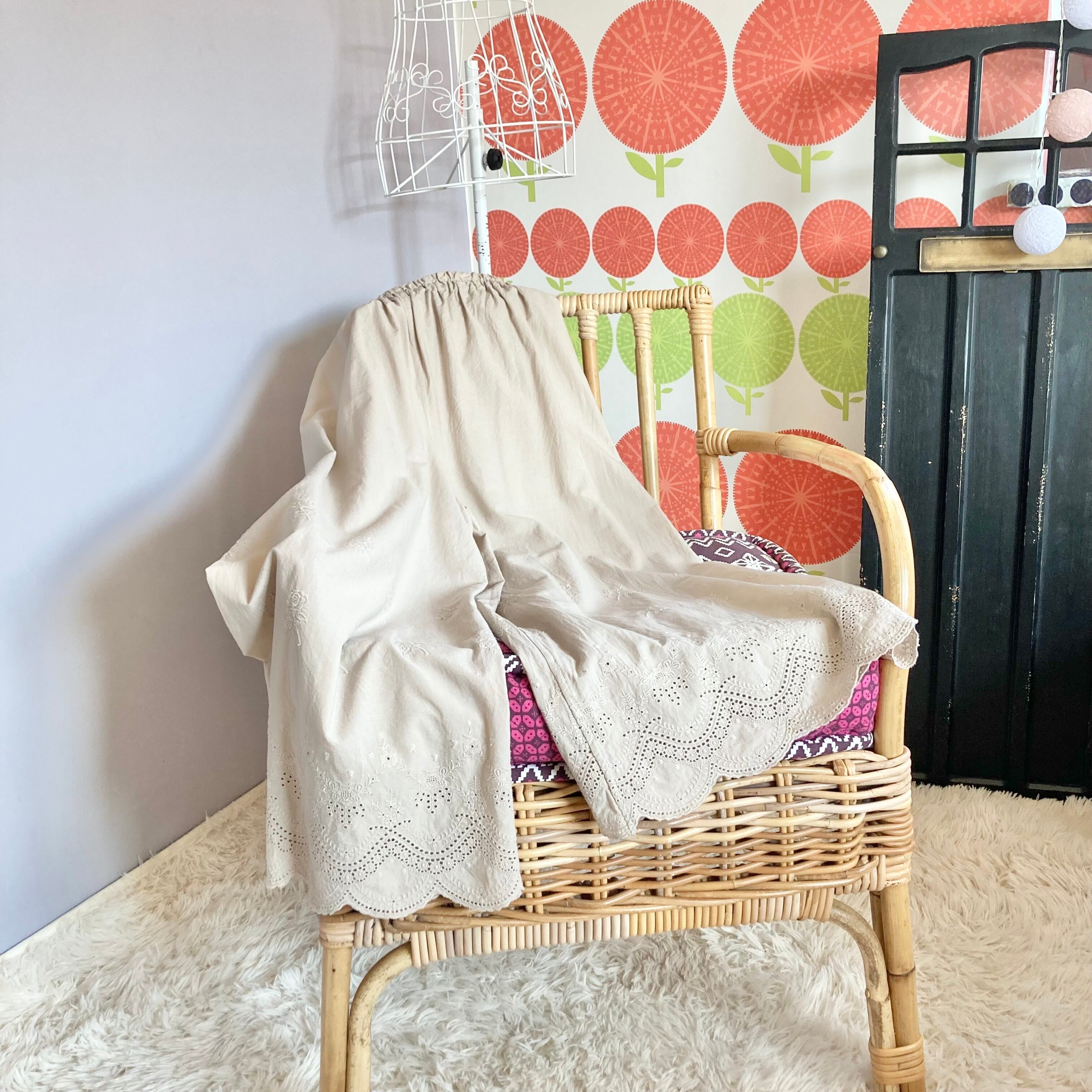 花の飾り刺繍のコットン生地