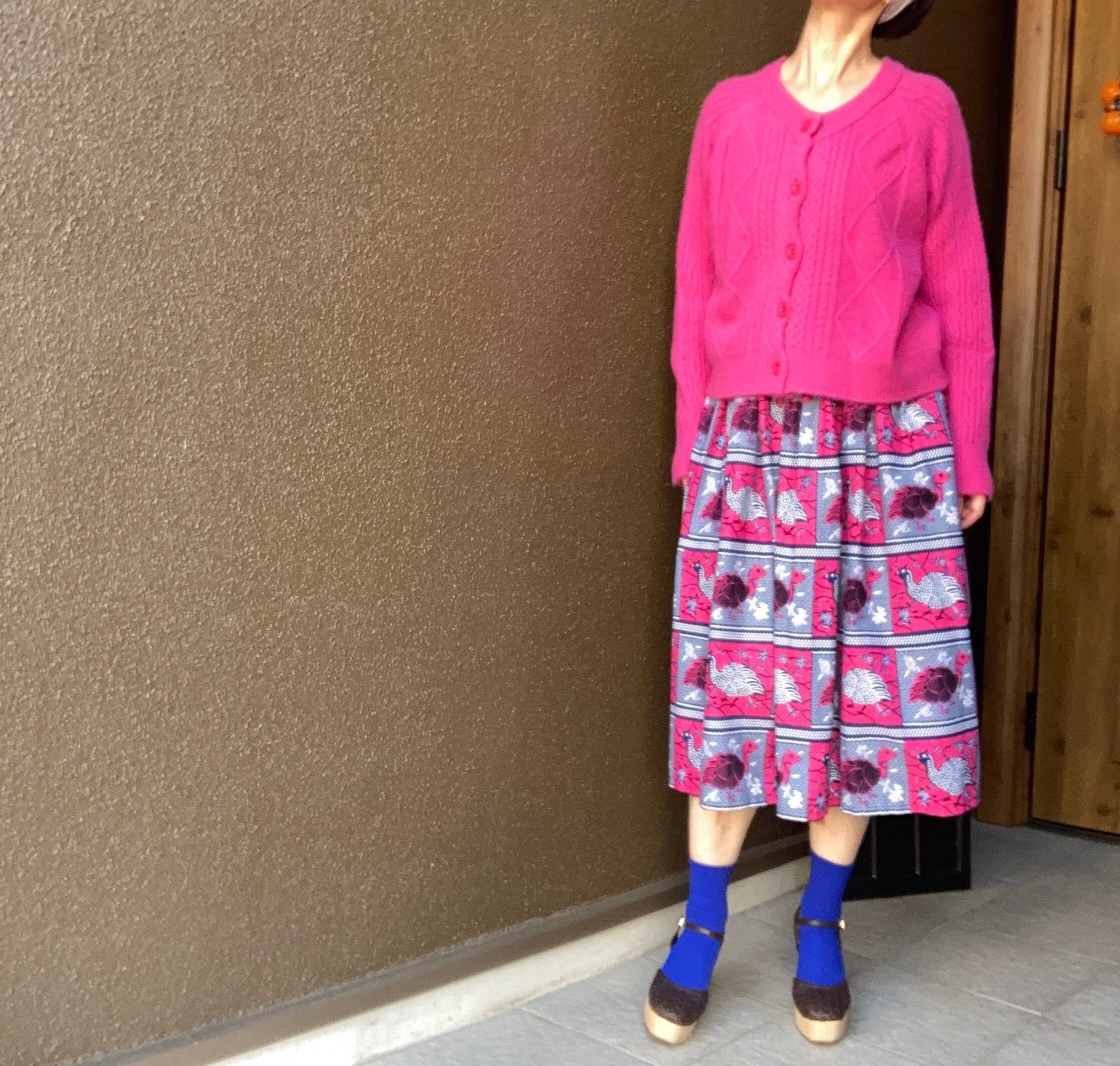 マゼンタと藍色の鳥さん柄