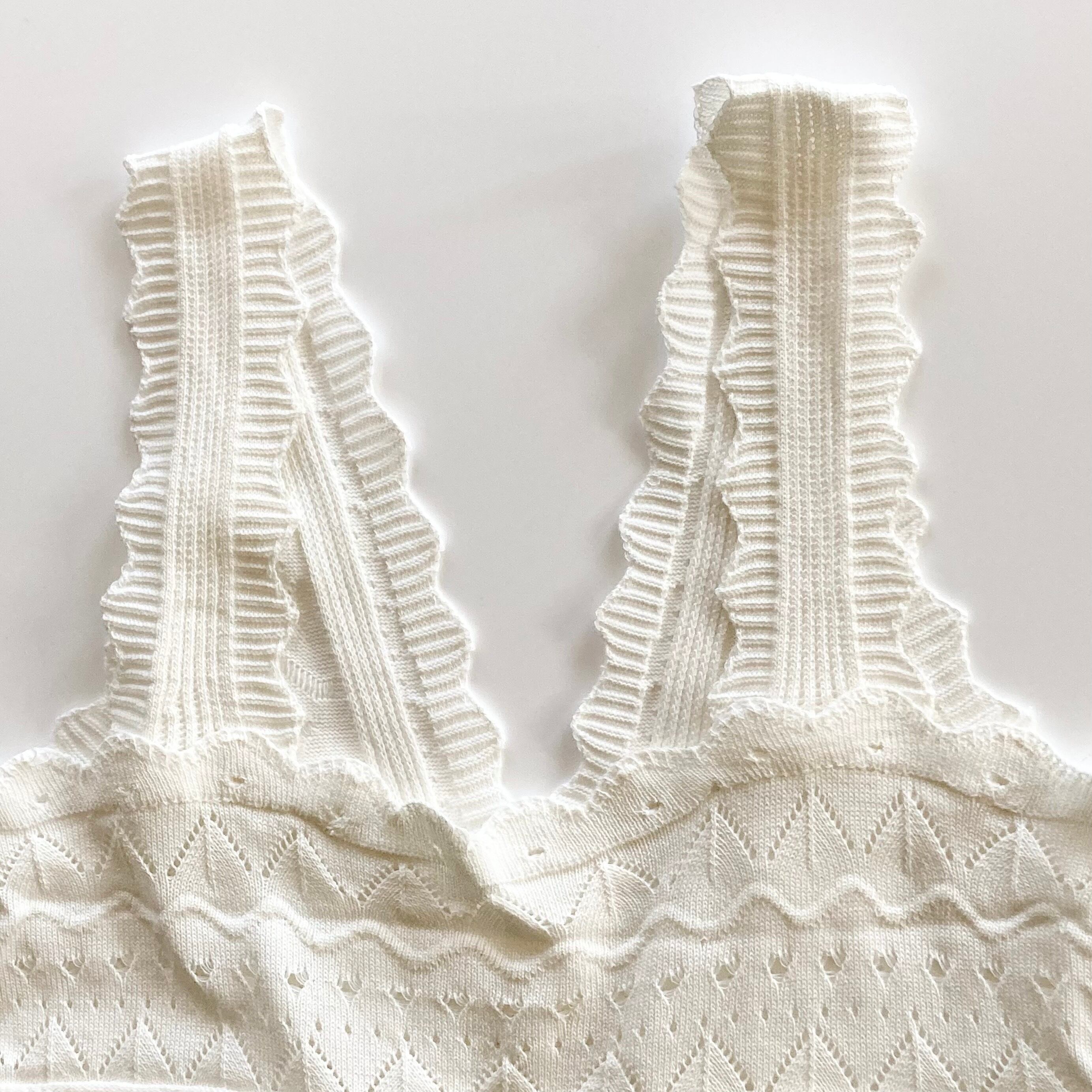 詳しいサイズは画像に表記してありますので必ずご確認の上ご購入下さい。 ニット素材の編み目のかわいいミドル丈のキャミソール インナーコーディネートにもご活用いただけます。
