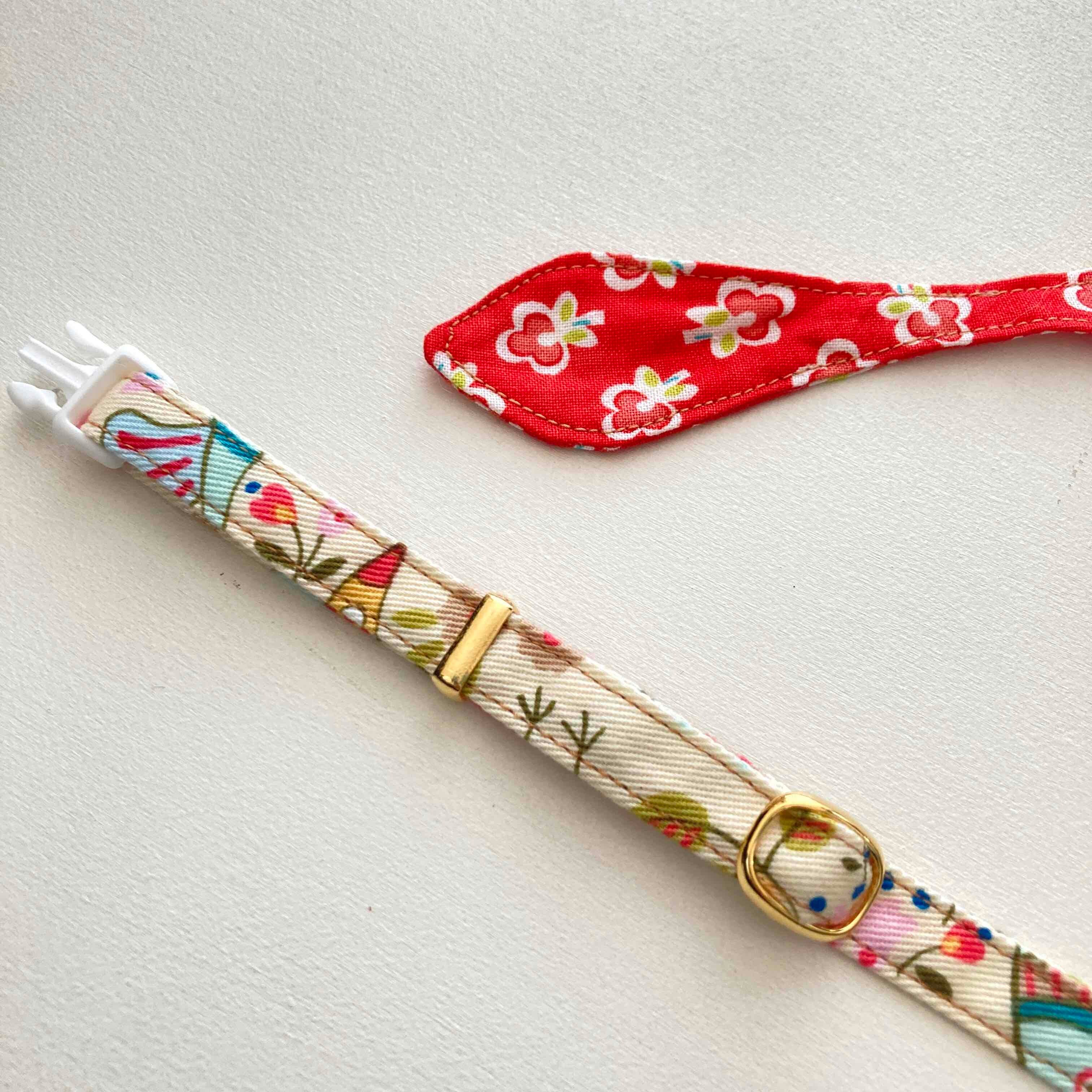 パーツはアメリカDuraflex社の製品を使用。 猫用に作られたBreak-awayバックルは力が加わると外れるので、万が一首輪が何かに引っ掛かってしまったときに重さで外れやすくなっています。