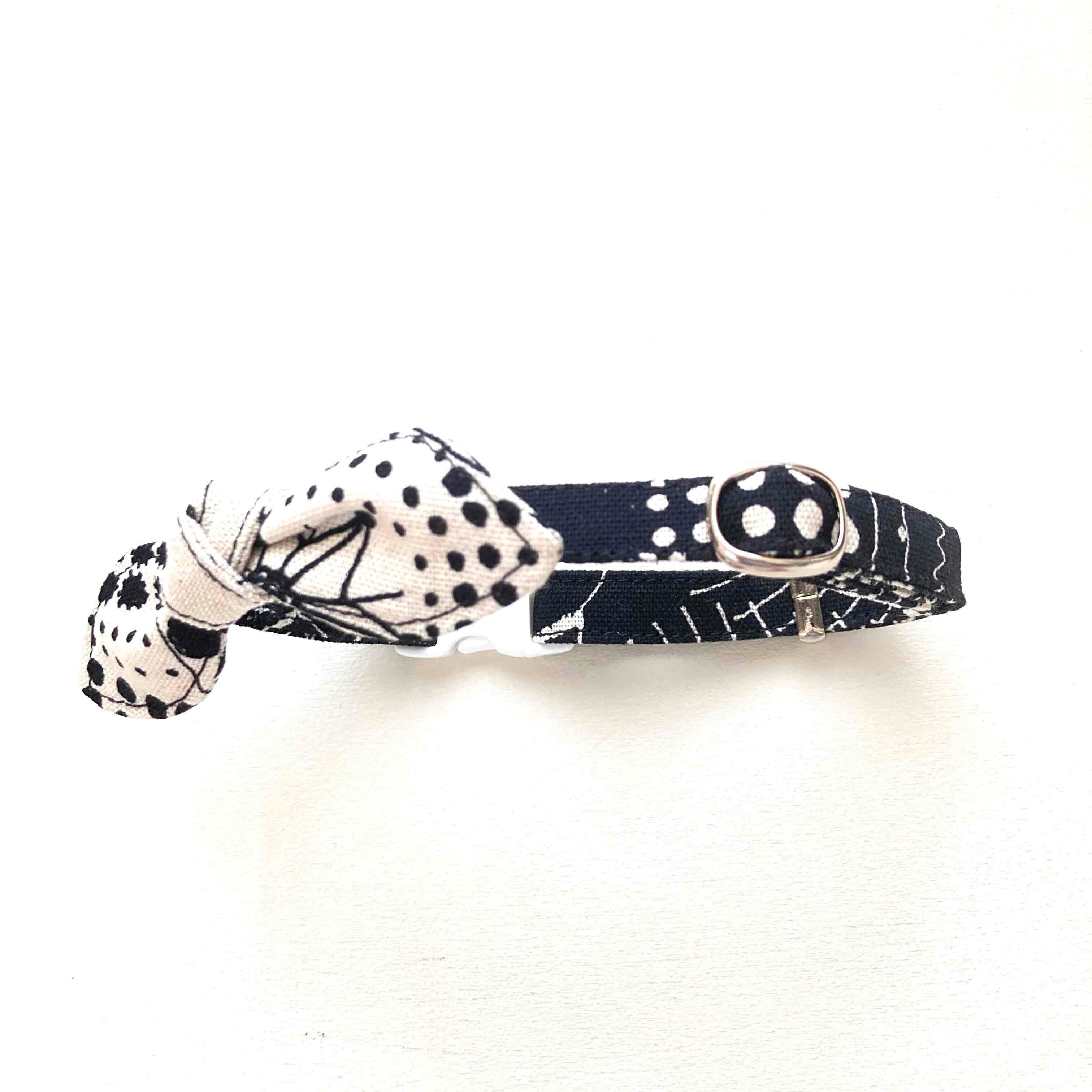 Black&Whiteの抽象的なデザイン。首輪部分は黒ベース、リボンは同柄の白ベースです。