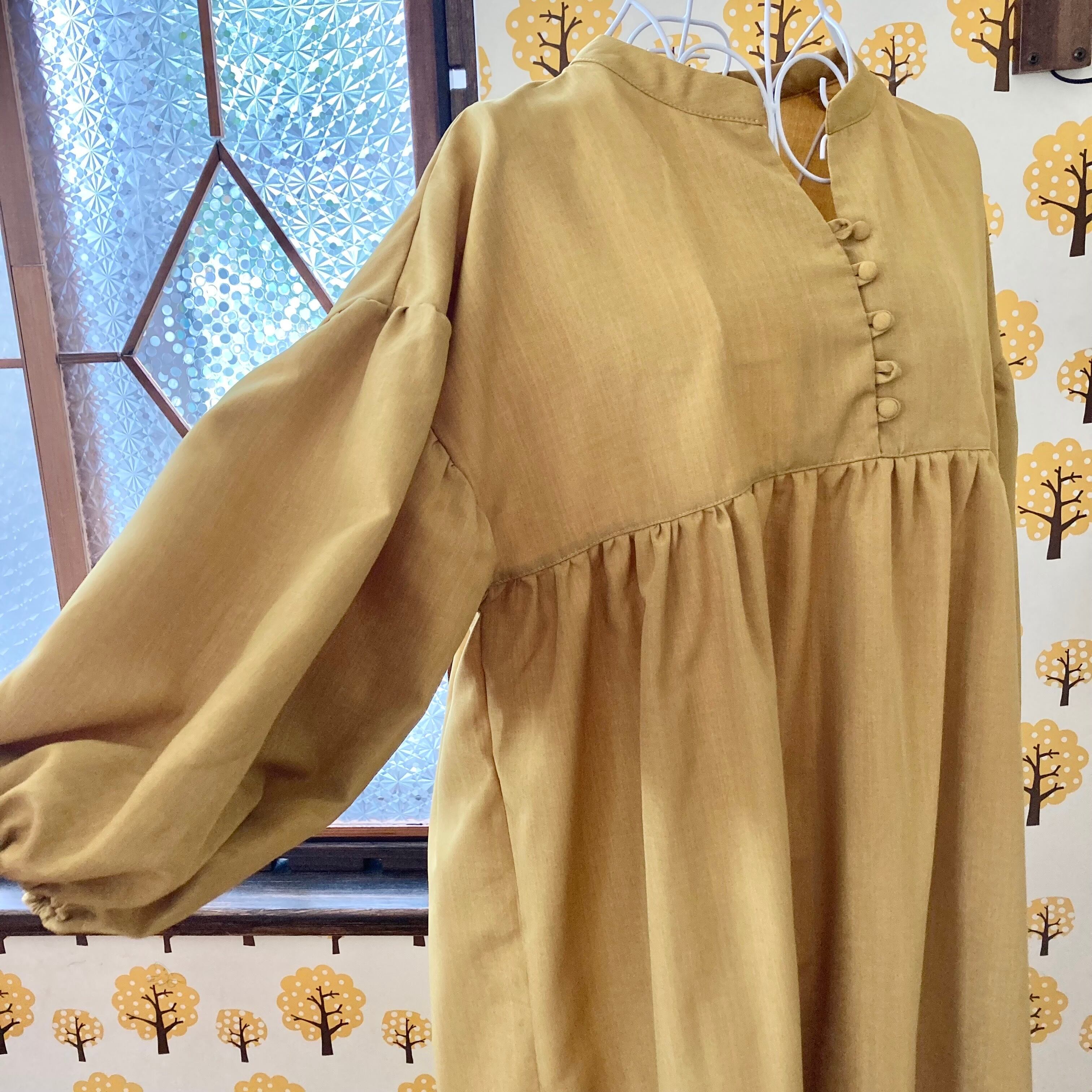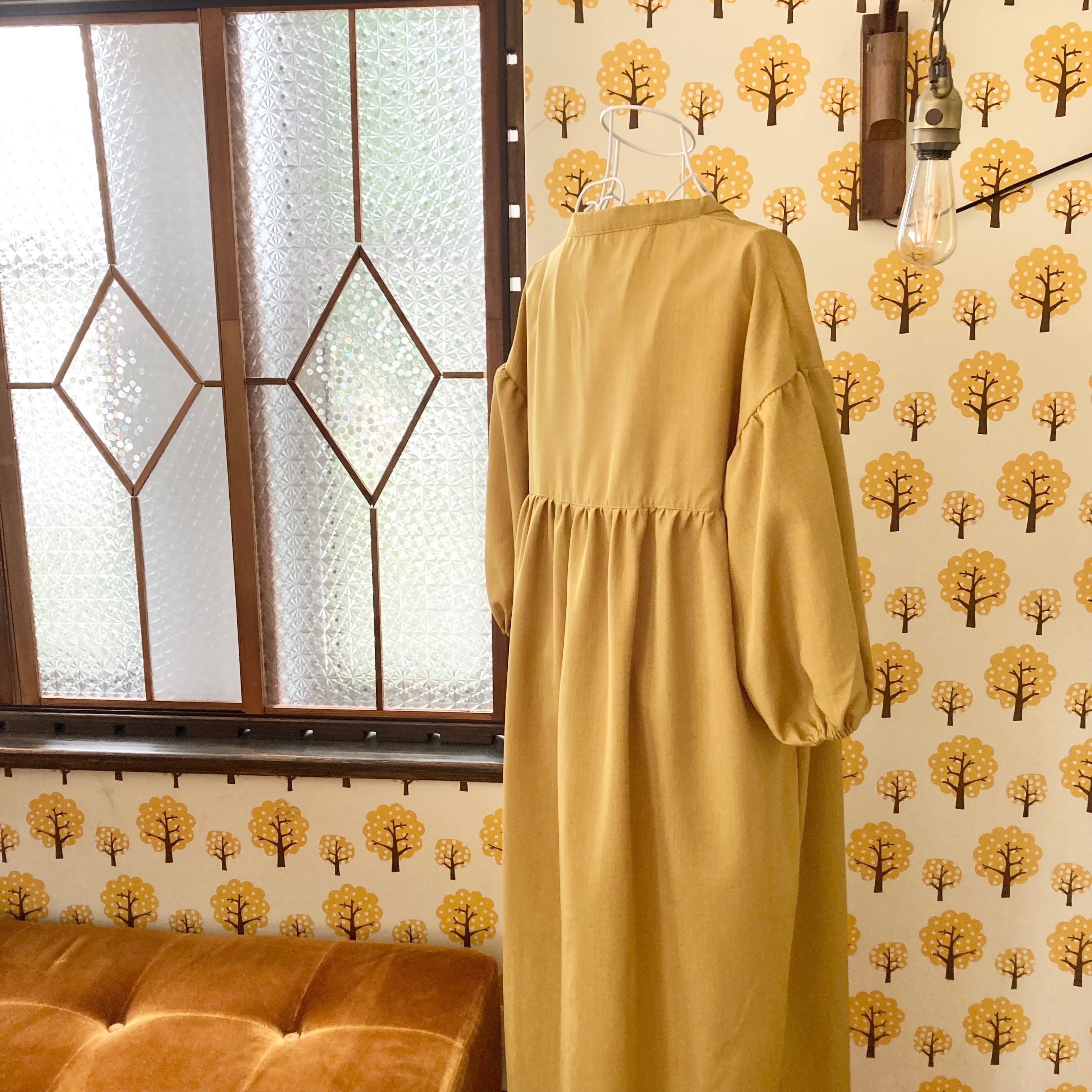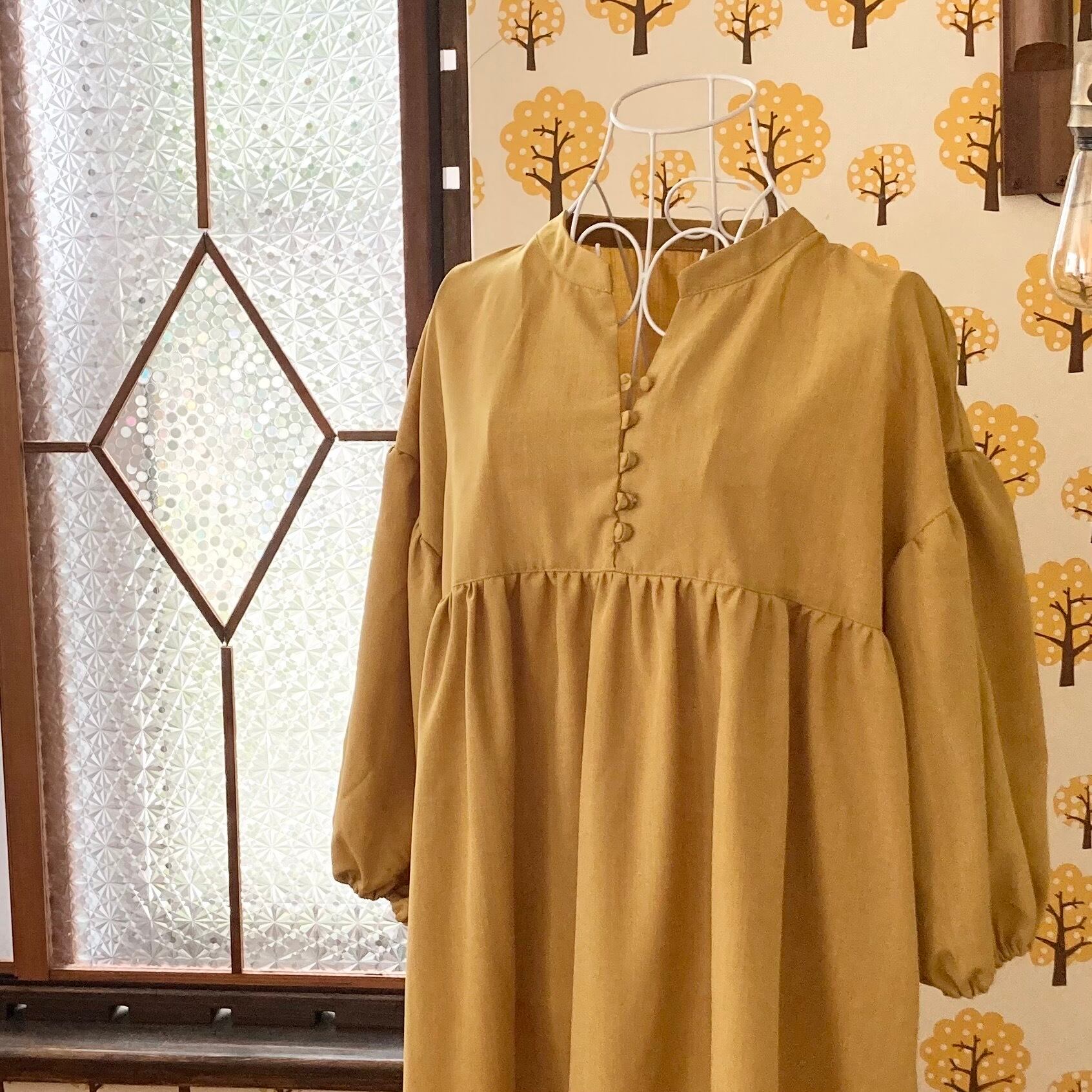 ぽわん袖ワンピースマスタードイエロー