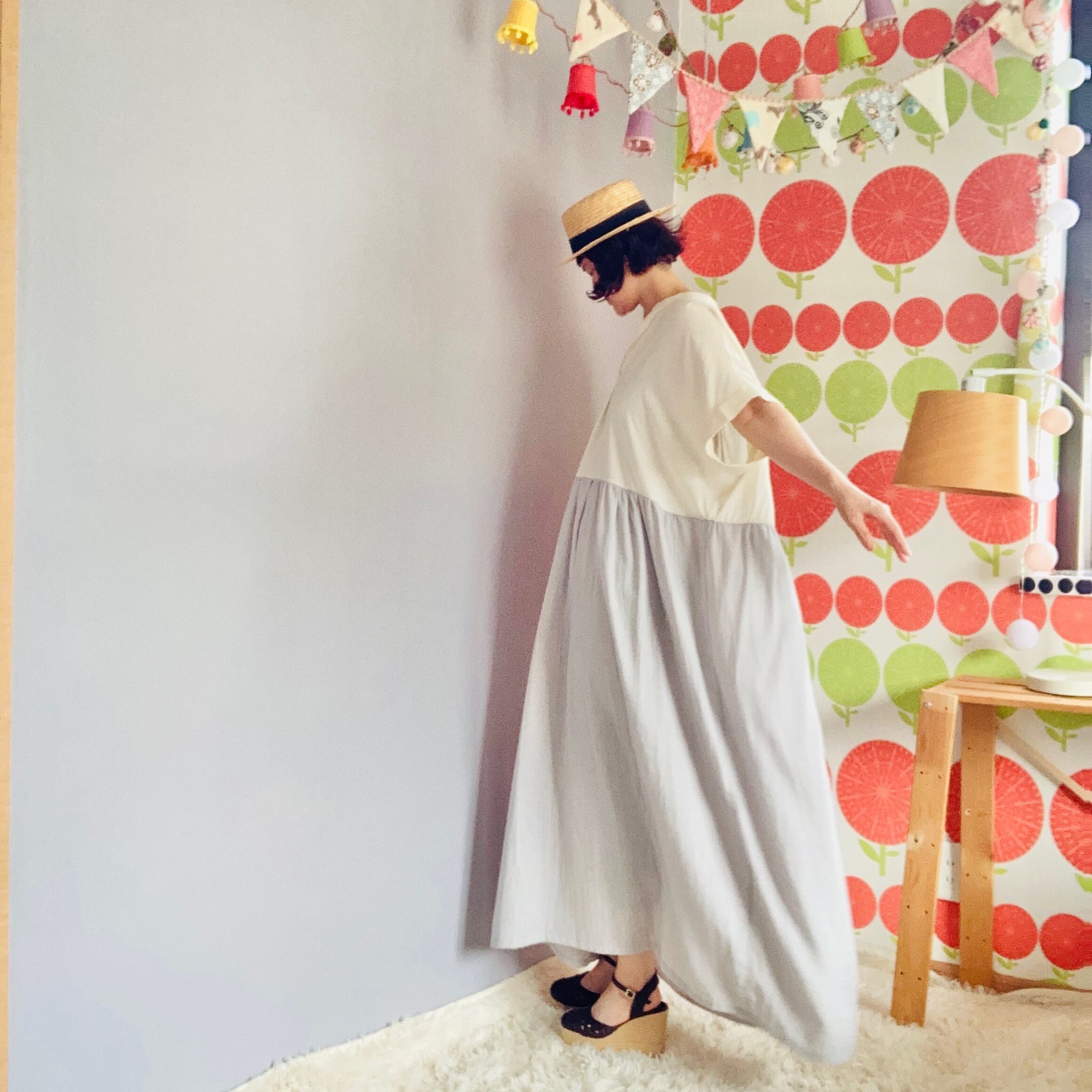 肌触りのよい日本製のダブルガーゼをスカートにしてワンピースとしてリメイクしました