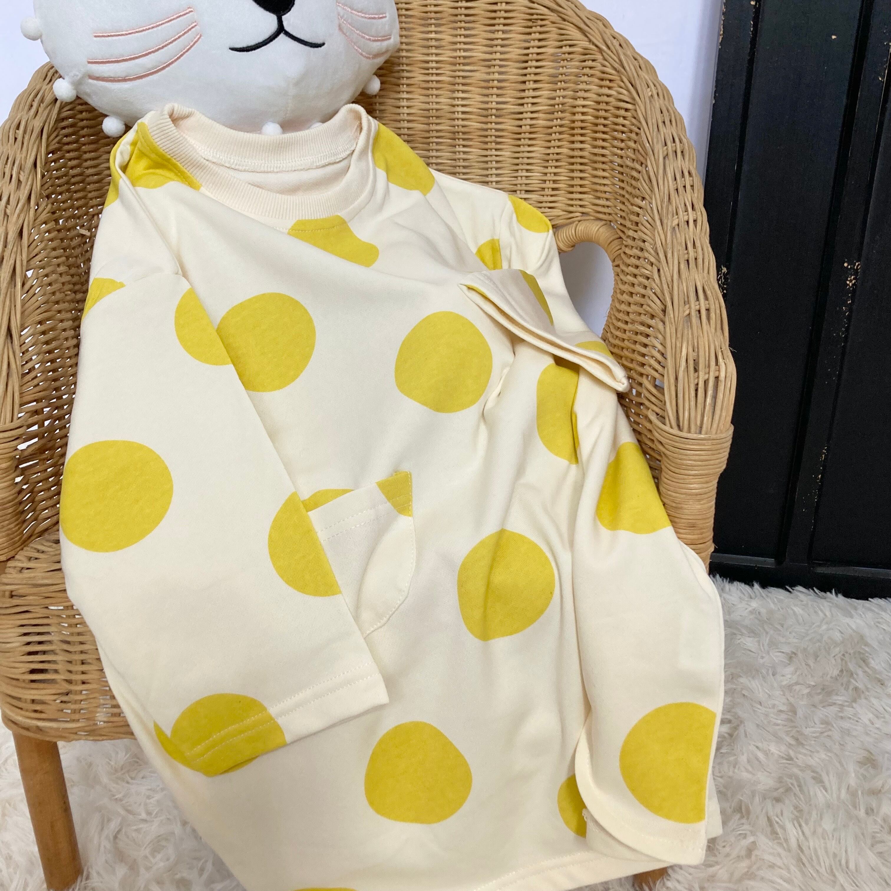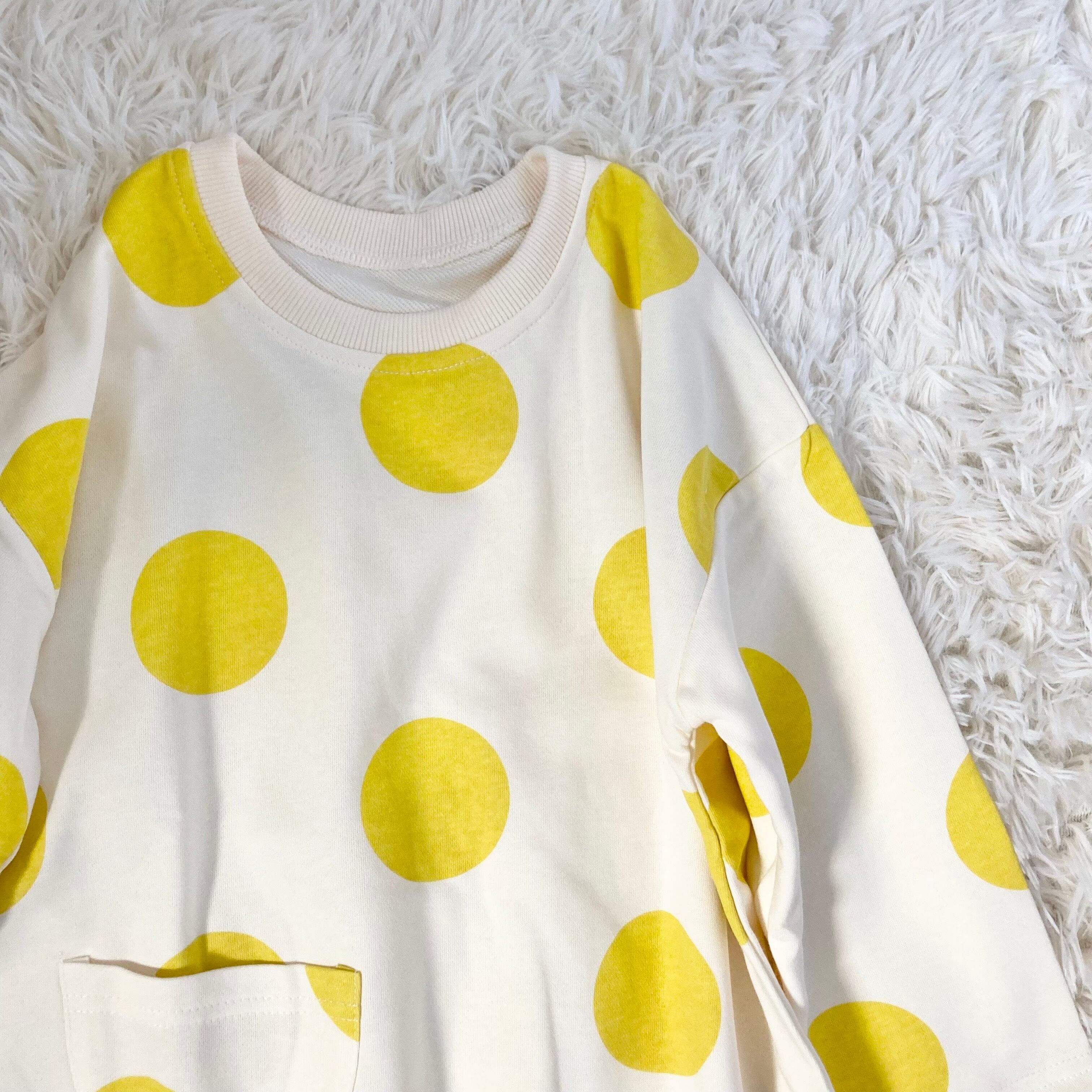-color 生成り・黄色 -size kids 120/130サイズ -material 綿 100% -feature 長袖・トップス・トレーナー・ワンピース・チェニック *がんばルームウエアはリメイク代・送料・税・寄付金が含まれた価格です* *☟画像の詳しいサイズを必ずご確認ください☟*
