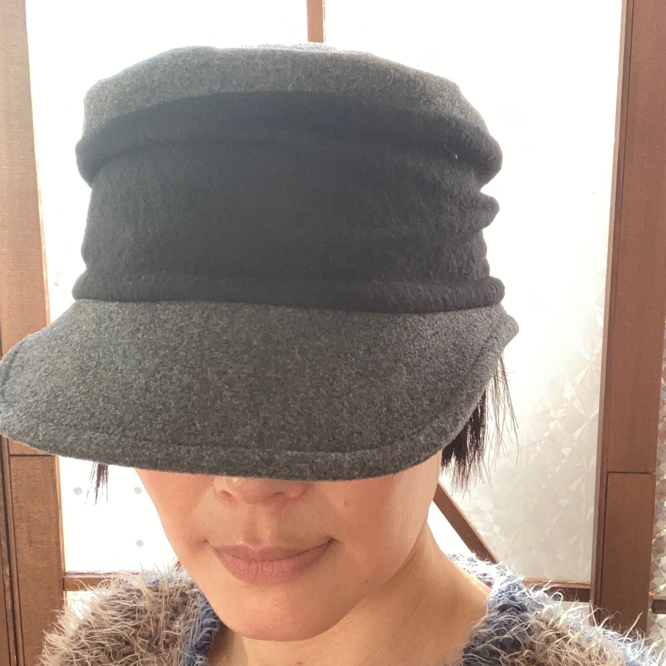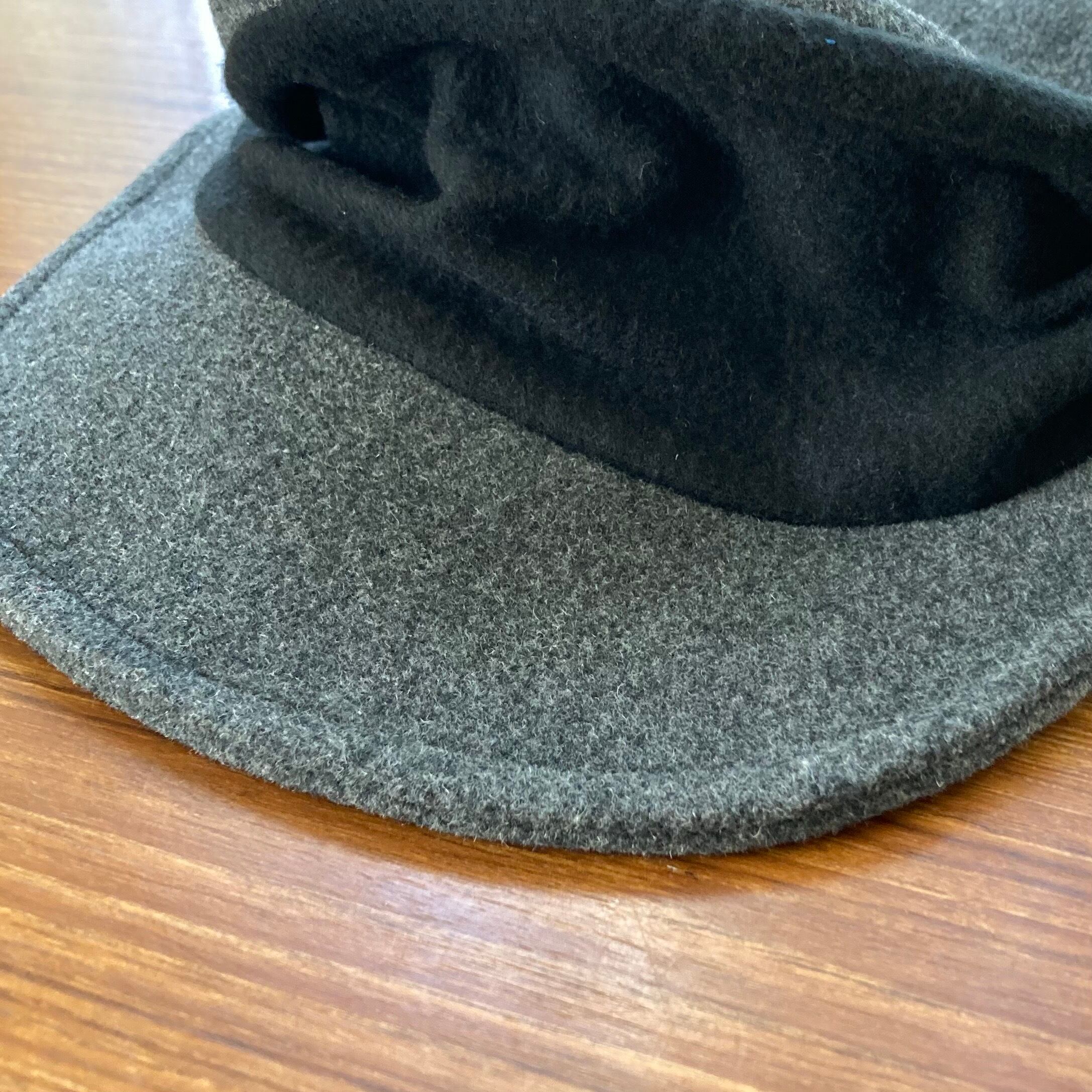 厚手の生地で作ったバイカラーのツバ付きハット