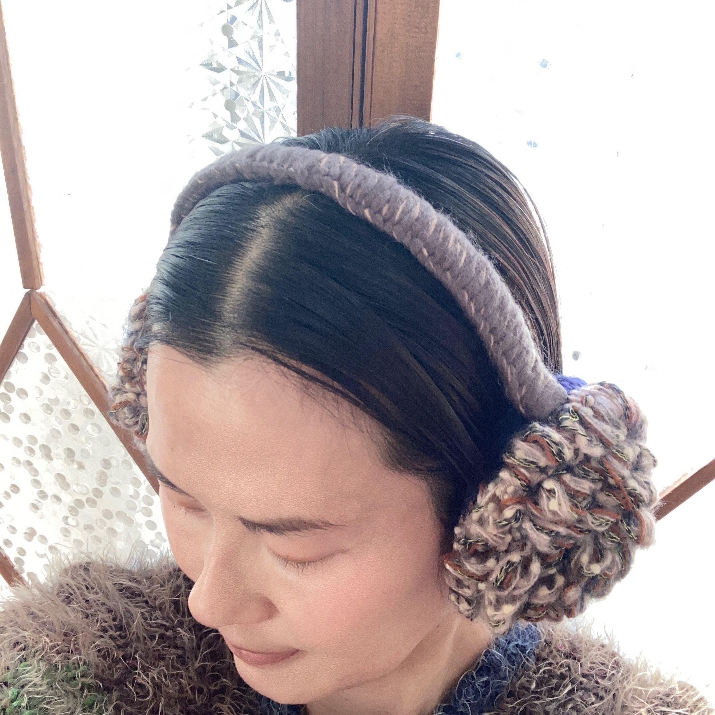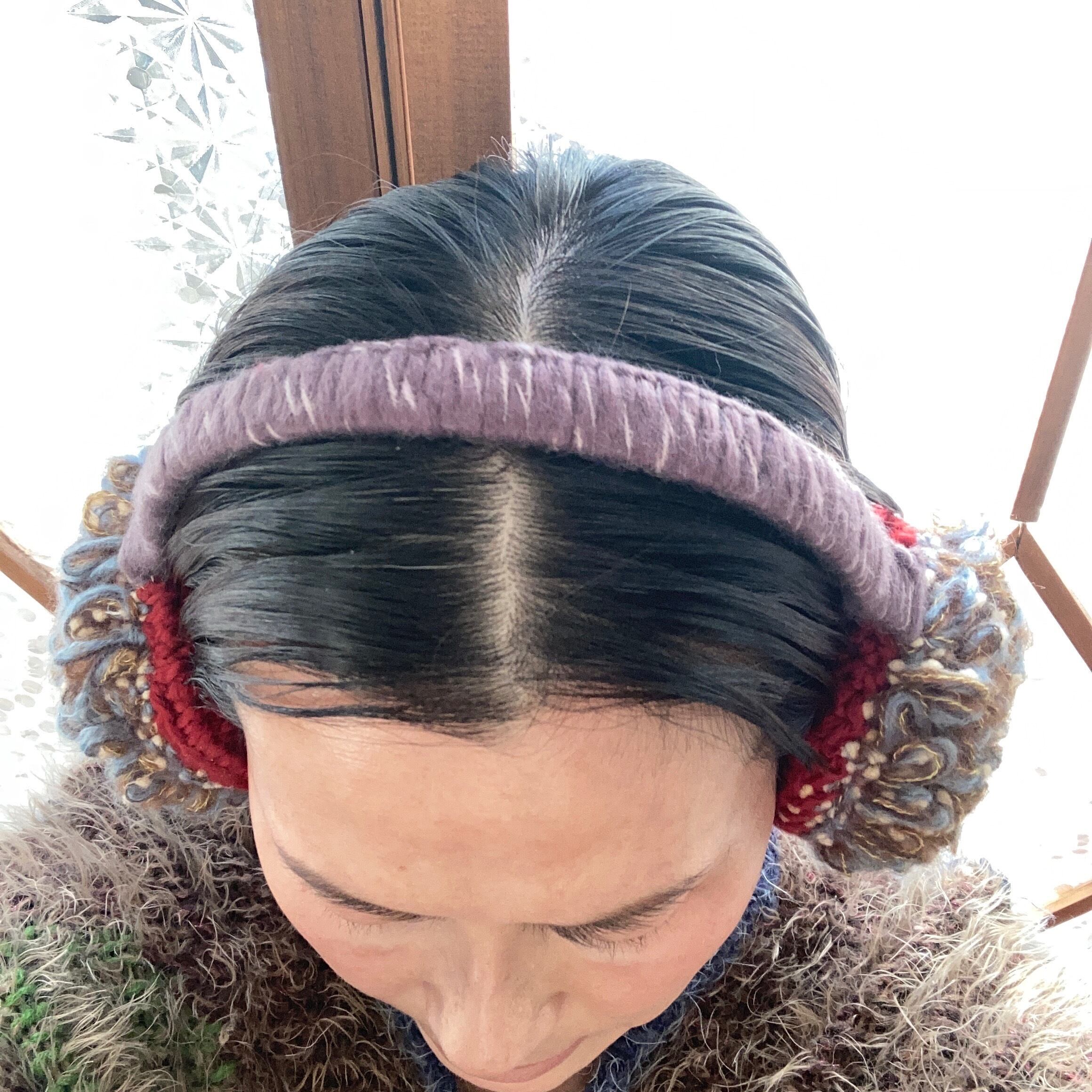 もふもふの毛糸をあしらったかわいい大きめのイヤーマフ