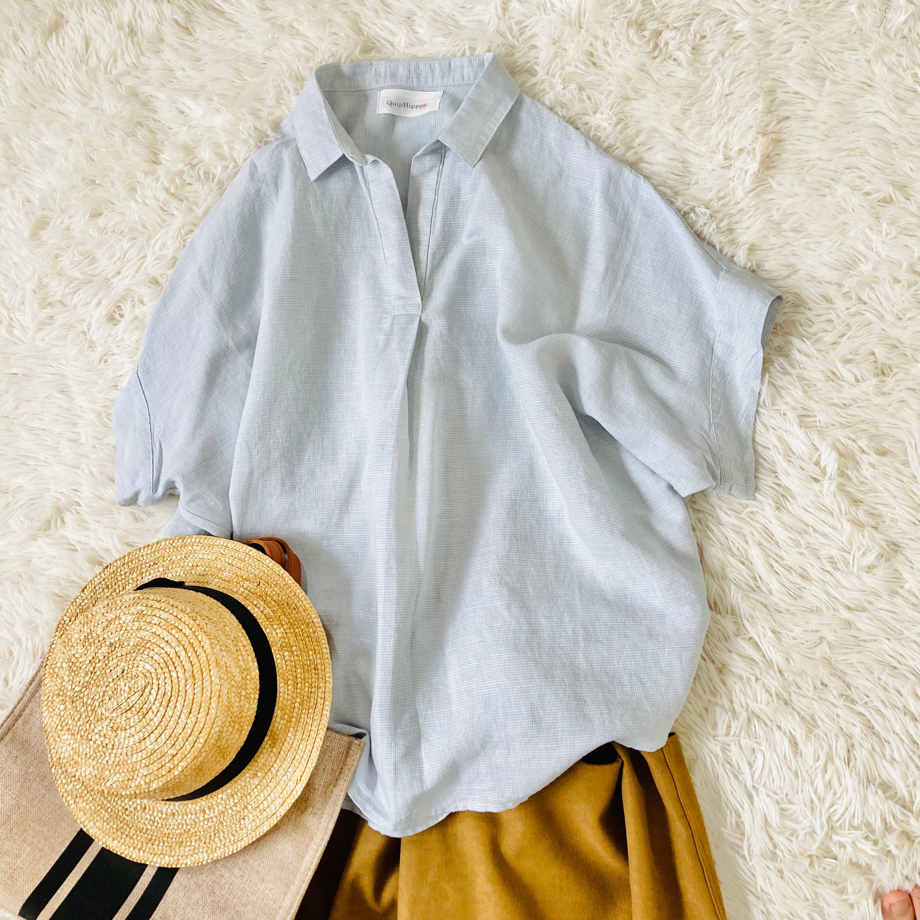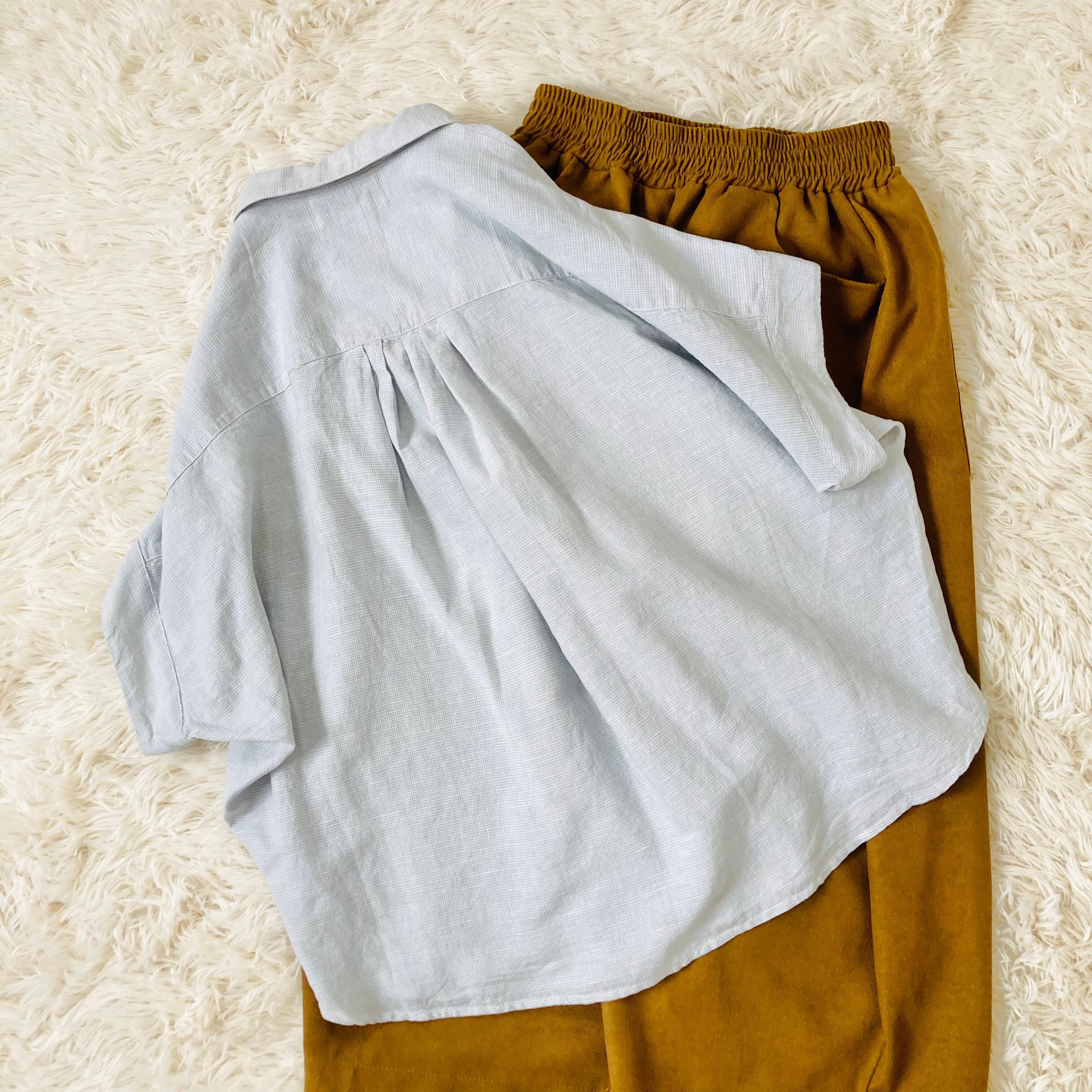 あなたのコーディネートに彩りを添える、fuwariブルーのリネンmixシャツ。ぜひお手元にお迎えください。