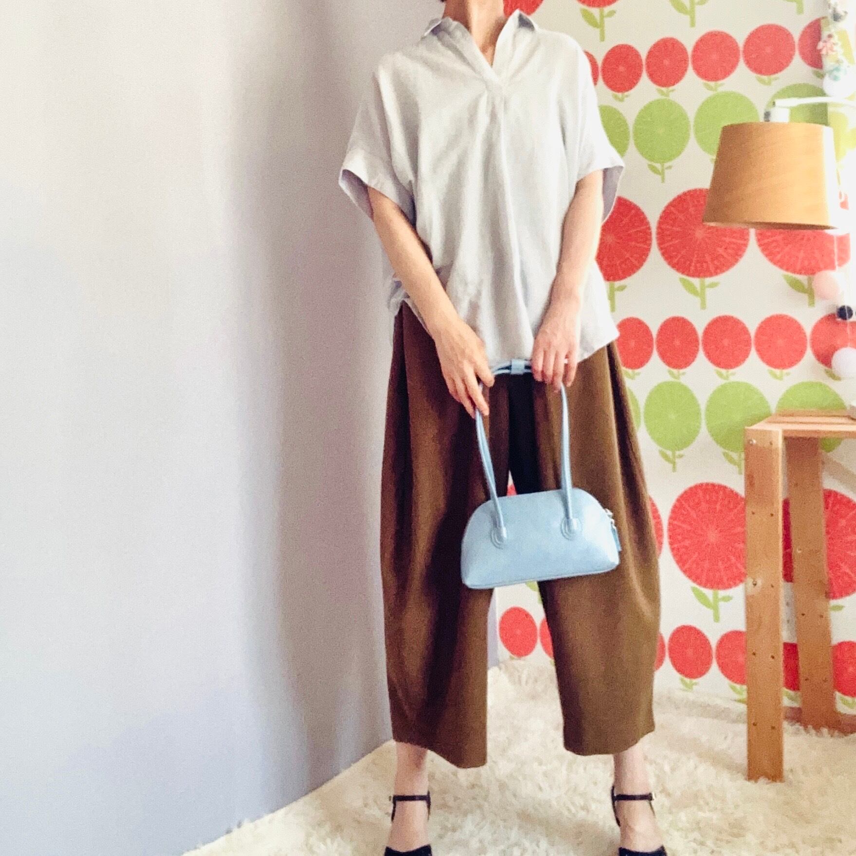 fuwariブルーのリネンmixシャツは、軽やかな着心地が魅力の一枚です
