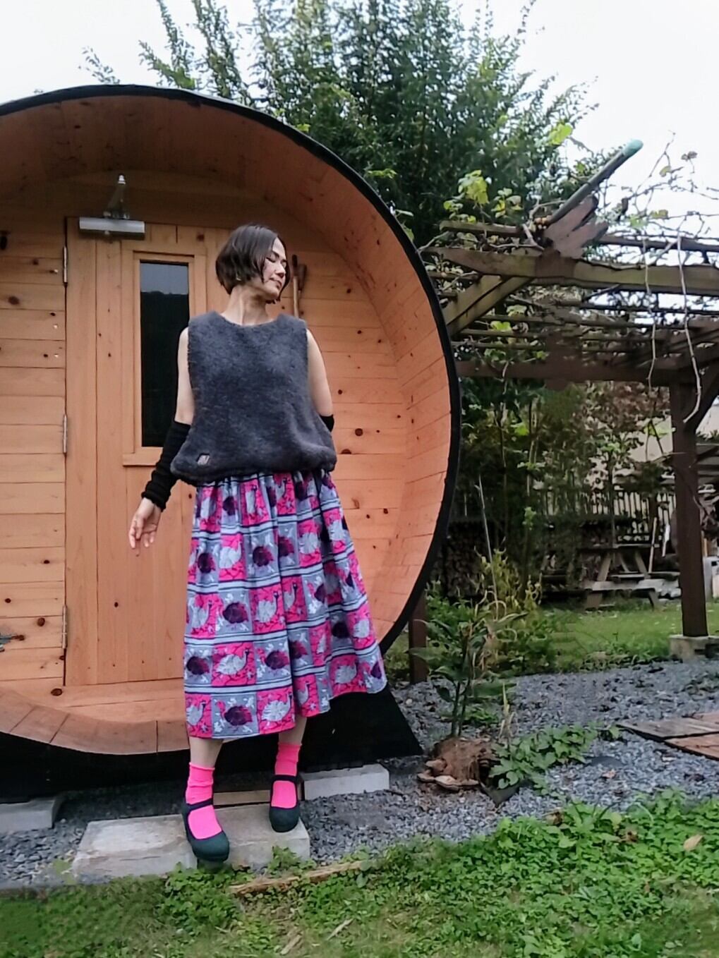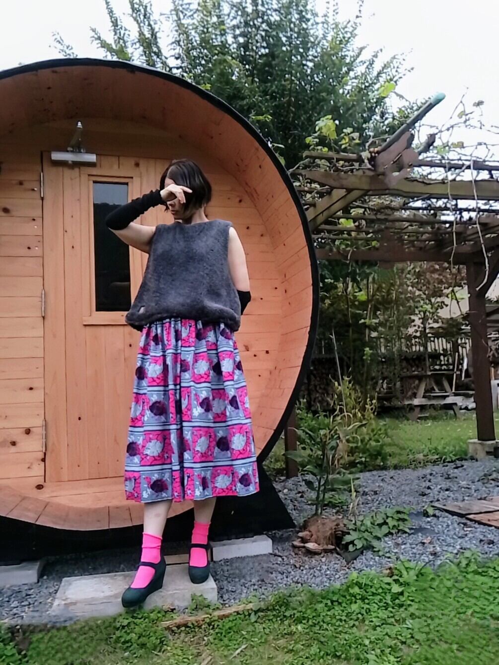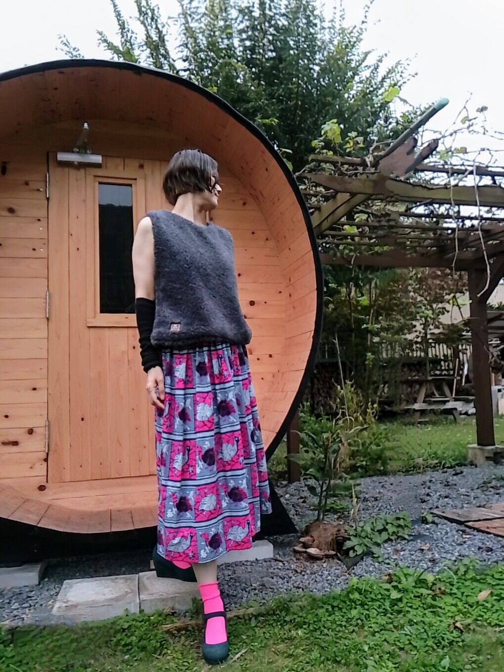 2set-upチェックスカート+oneグレーボアベスト