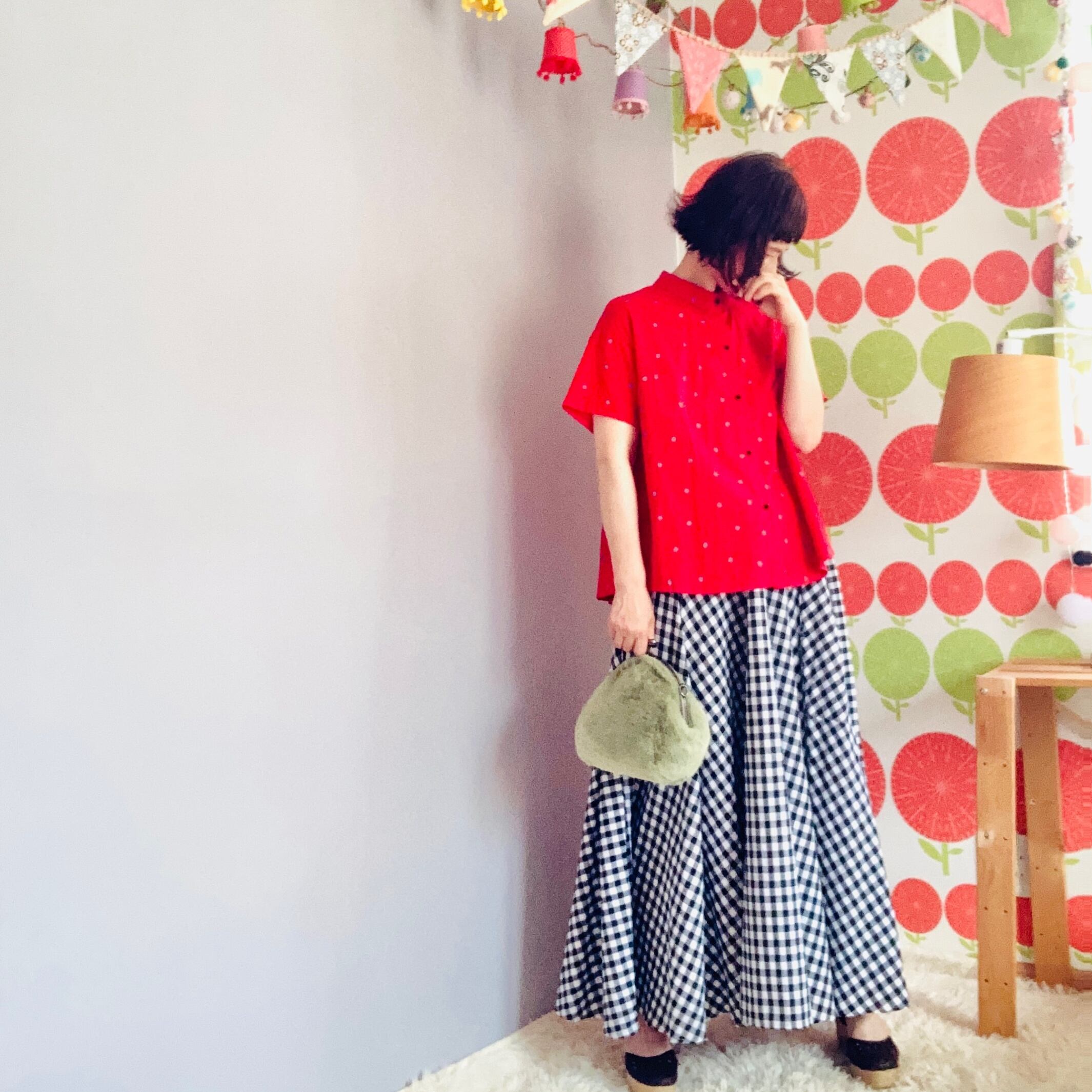 -skirt チェックのロングスカート