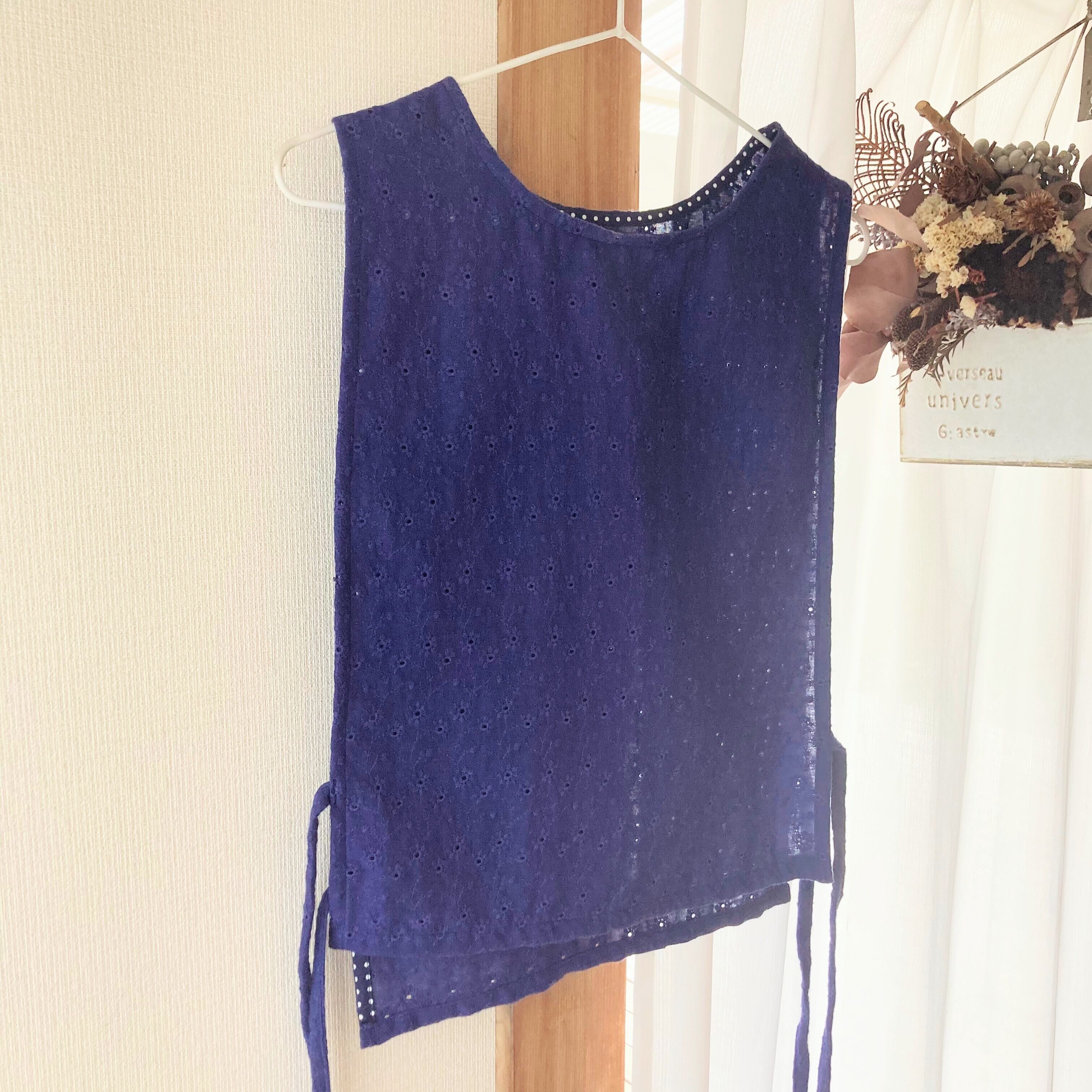 -feature 紺・リボン結び・かぶせる・袖無し・春夏