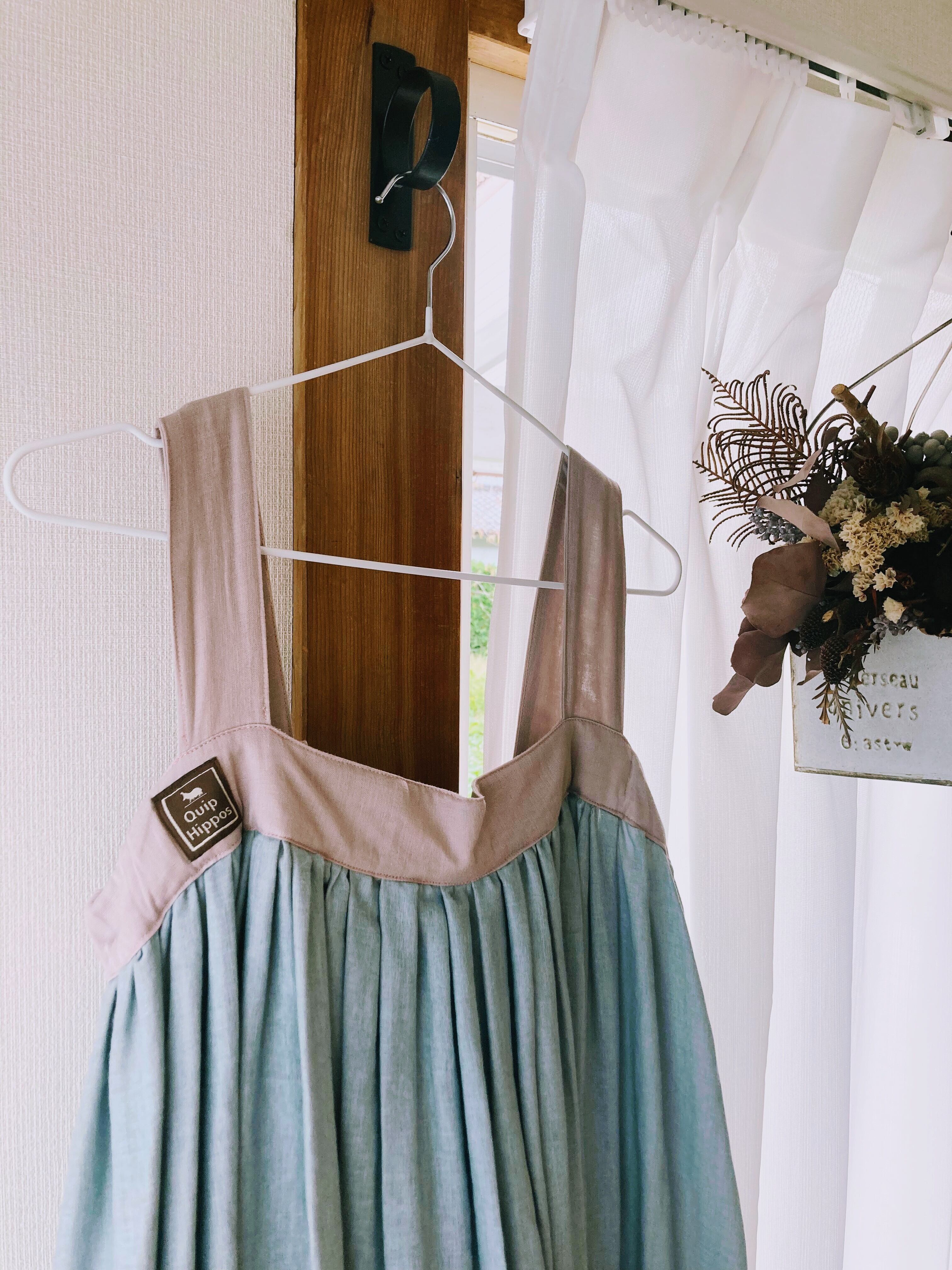 -feature ブルーグレー・ダブルガーゼ・春夏秋冬・ギャザースカート